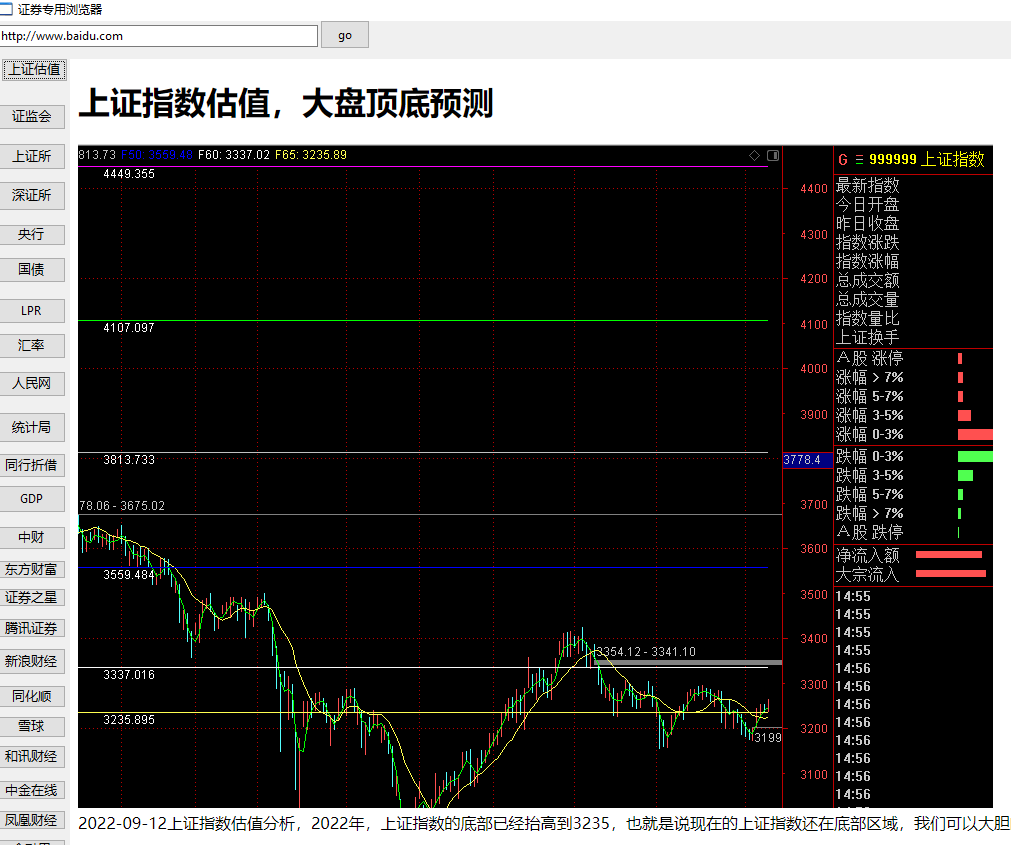 2022-09-12上证指数估值分析,2022年,上证指数的底部已经抬高到3235,也就是说现在的上证指数还在底部区域,我们可以大胆的布局,末来最高可以到4450,也就是说末来二年会有35%的指数收益